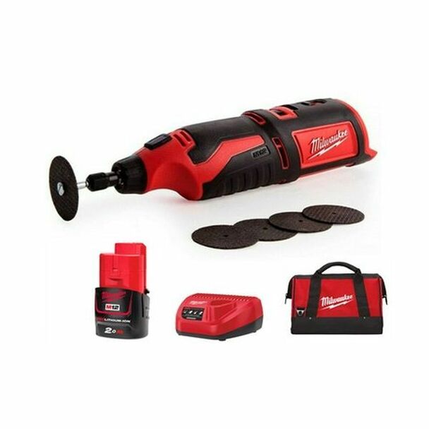 Compact, portable and powerful cut-off solution for the professional. Get the power of a corded rotary tool in the M12 Cordless Rotary Tool, which integrates high-performance motor design, optimized electronics and Redlithium-ION battery technology for exceptional power and durability. This compact, versatile tool offers a variable-speed of 5,000-32,000 RPM and a collet that’s compatible with all 0.8mm – 3.2mm shank accessories for thousands of cutting, grinding, sanding and polishing solutions. Maintenance contractors, electricians, plumbers and automotive mechanics will find it indispensable for close-quarter cut-off and grinding applications. A variable-speed dial offers fluid control, and the 0.6Kg weight permits hours of comfortable use. Grinder-style exhaust ports and front-bearing protection help this tool exceed performance and endurance expectations. The rotary tool comes with five cutting wheels, a mandrel and wrench.