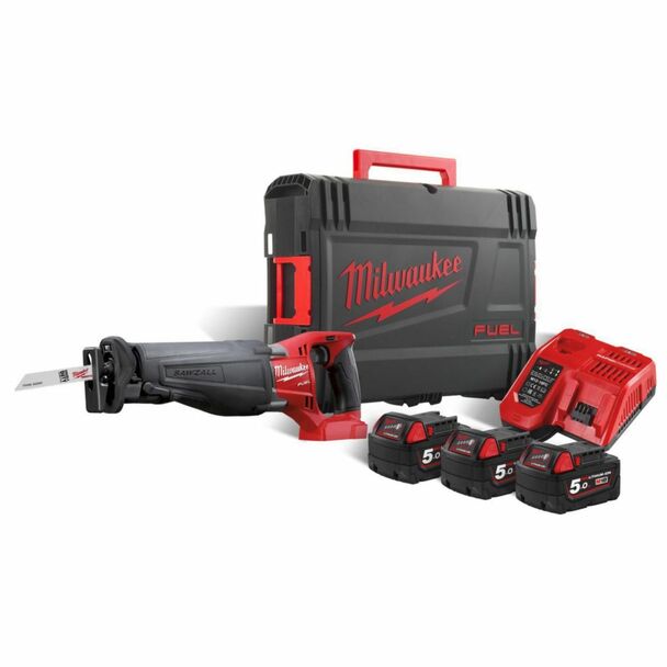 1x M18CSX Sawzall Recip Saw, 3x M18B5 – M18 5.0Ah Battery , 1x M12-18FC – M18 Charger, 1x Carry Case